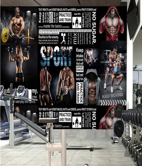 This fitness-themed wall mural is a great addition to any workout space. It serves as both a decorative element and a source of motivation, transforming plain walls into an engaging backdrop.