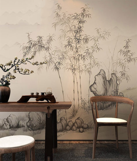 Enhance your interior space with this beautiful Chinese landscape wall mural. Inspired by traditional ink – wash painting, it features elements like bamboo, rocks, and misty mountains. It can transform an ordinary wall into a serene and artistic backdrop.