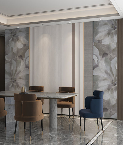 This large – scale decorative wall panel is a great choice for sprucing up your interior walls. It features a repeating floral pattern combined with vertical geometric stripes, offering an elegant and contemporary look. Ideal for residential spaces, it can transform a plain wall into a stylish focal point.