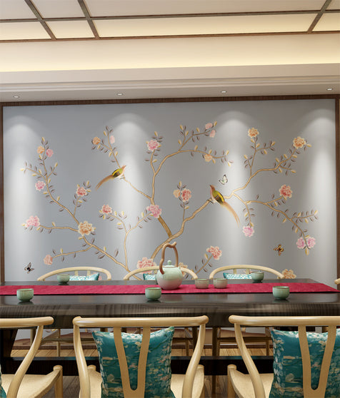 - Design Style: Chinoiserie – inspired, with delicate, stylized branches, floral motifs, and nature elements.