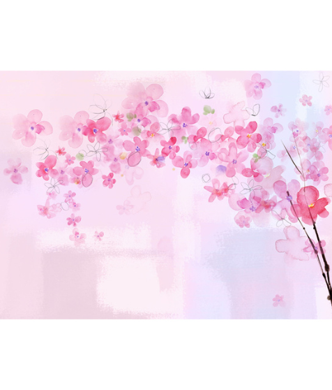- Color Scheme: Dominant soft pinks, with purple/pink centers in flowers, and accents of warm and cool tones