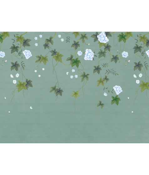 - Pattern: Intricate, clustered floral arrangements with organic leaf shapes and small birds in a symmetrical yet relaxed layout