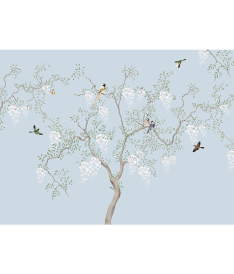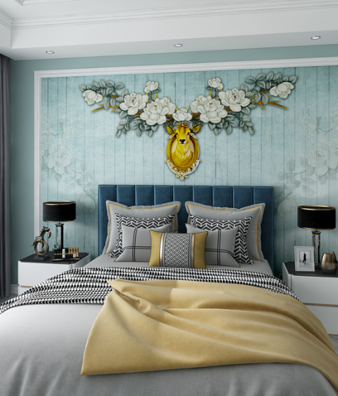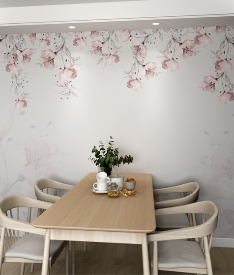 This floral wall mural is perfect for decorating large wall surfaces in living rooms or dining rooms, adding a touch of elegance and creating a modern, airy atmosphere.