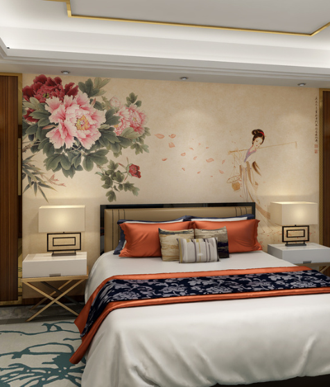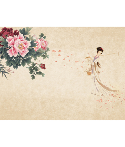 This wall mural is a large – scale decorative piece perfect for residential spaces. It features a beautiful traditional Chinese design with detailed peonies, a classical female figure, and falling petals, bringing an elegant and cultural touch to any room.