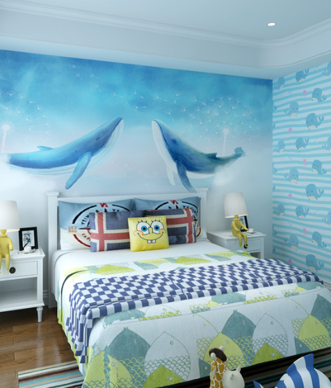 - Texture: Watercolor/brushstroke texture for the mural, plush for pillows, and smooth for nightstands