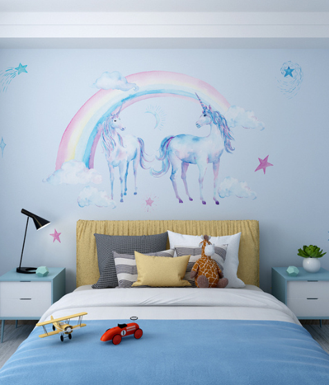 - Design Features: Central dual – unicorn, rainbow and cloud scene with supporting elements like scattered stars and celestial accents