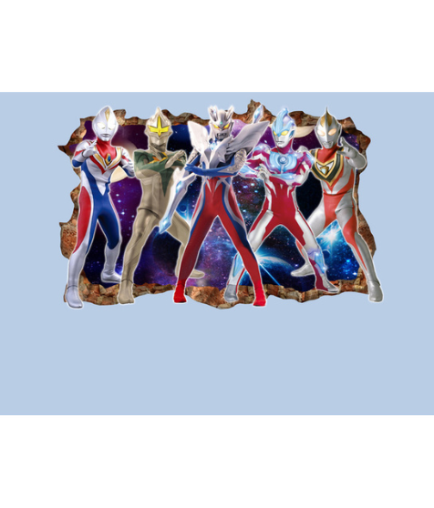 - Design Features: Five distinct Ultraman figures in dynamic poses, a starry space background, and a realistic “broken wall” 3D effect