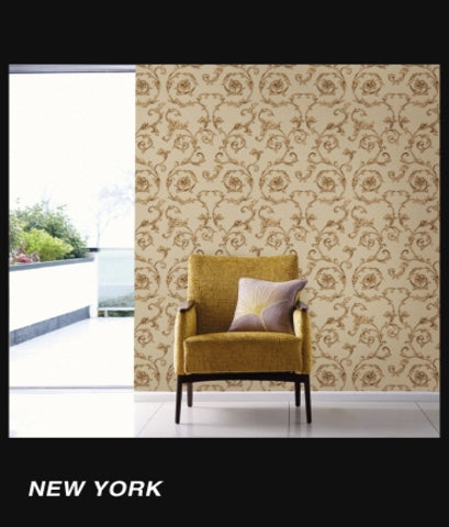 This wallpaper is a beautiful decorative wall covering that can transform the look of any interior space. It features an intricate, classic design with warm colors and an embossed texture for added depth.