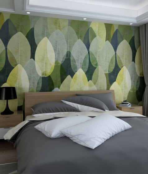 It is perfect for large surfaces such as living rooms and bedrooms, serving as a focal point and color backdrop for interior decor.